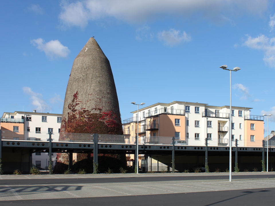 Der auffällige Betonbunker in der Form eines Zuckerhuts stammt aus dem Zweiten Weltkrieg. Er wurde 1941 für die Bediensteten des Bahnausbesserungswerks Limburg errichtet, als die Bombenangriffe vor allem auf strategisch wichtige Bahnanlagen zunahmen. Gegen Erschütterungen sollte das Bett aus Eisenspänen helfen, auf dem der Bunker angelegt wurde. Im Innern sollen noch Holzbänke aus der Nutzungszeit erhalten sein, auf denen die Arbeiter bei Angriffen sitzen konnten (Denkmaltopographie).
