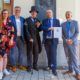 Kunst- und Kulturminister Timon Gremmels bei der Übergabe der Auszeichnung an das Liebigmuseum Gießen. Auf dem Bild zu sehen sind von links nach rechts: Nina Heidt-Sommer (MdL), Oberbürgermeister Frank-Tilo Becher, Dr. Stephan Becker als „Liebig”, Kunst- und Kulturminister Timon Gremmels und 1. Vorsitzenden Prof. Dr. Gerd Hamscher. © Johannes Voigt.